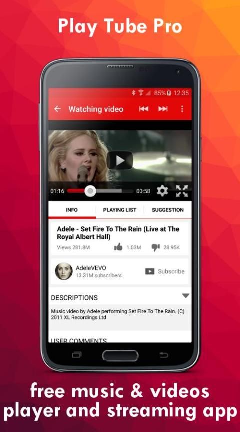 Смотрите миллион бесплатных видео и слушать песни с Youtube, загрузить Play Tube Pro.