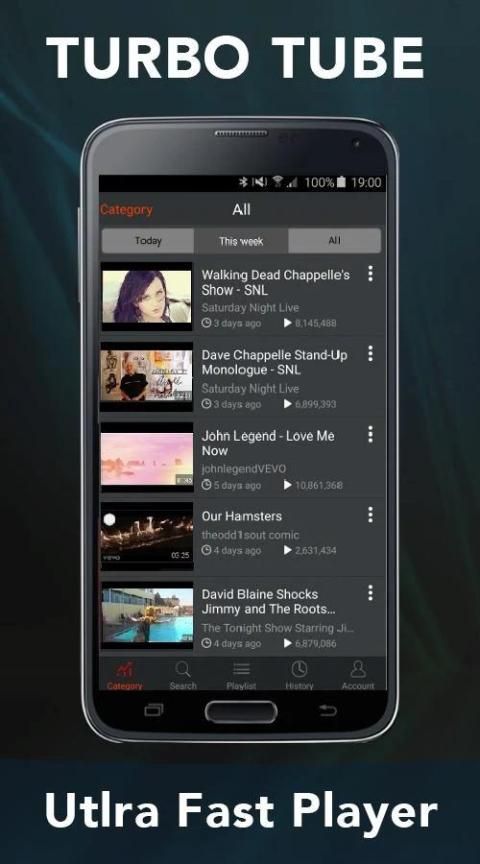 Play Tube Turbo Поток 2017 позволяет обнаружить миллион труб, видео, песни, и музыка на Youtube и Vimeo на Turbo Speed, не имея, чтобы зарегистрироваться и войти в систему с учетной записью Google Gmail и аккаунт Vimeo.