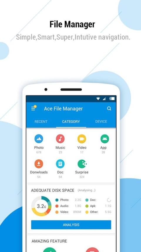 Получите мгновенные результаты ваших поисков во внутренней памяти и карте памяти MicroSD. Пользователи могут просматривать файлы по категориям, например, изображение, музыка, видео, приложения и т.д.