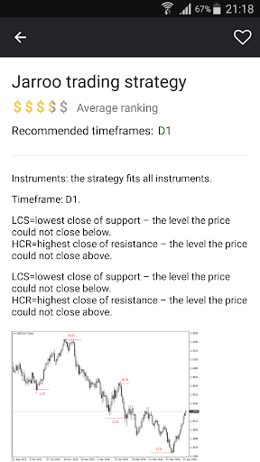 Больше не нужно смотреть нудные уроки и онлайн курсы. Успешная торговля без длительного обучения – это реально. Все, что нужно – это выбрать стратегию в данном приложении и следовать ей. Не важно, новичок Вы или форекс эксперт, торгуете в долларах, евро или другой валюте, а может, предпочитаете внутридневной скальпинг? Данное приложение представляет доступ к торговым стратегиям, которые были разработаны реальными практикующими независимыми трейдерами, для любого уровня опыта, по всем валютным парам и на любой вкус.