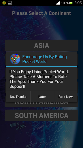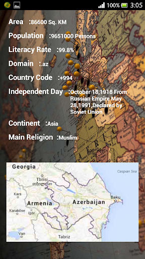 Pocket World - это приложение, которое предоставляет информацию практически о каждой стране на планете.Это может быть названо приложением «Земля -педия» или «Страна».Все флаги, имена континентов, континентные списки, имена капиталов, языки, валюта, объем района, код, доменные имена, религии, независимые дни или национальные праздники, а также Википедия или энциклопедия будут доступны для вас.Некоторые из функций, включенных в эту программу, являются следующими: как часть функции деталей страны или для полной информации о стране.