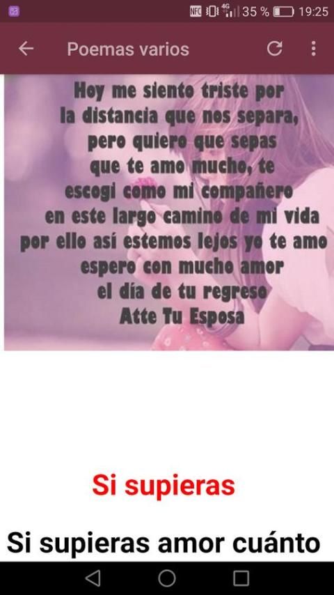 Скачать это приложение сразу «Стихи о любви» Расстояние и наслаждаться отправки фотографий с короткими любовными стихами, показывает, как enamorad @ ты, человек, которого вы знаете, направлен на оценку этих стихов любви и чувств на расстоянии.