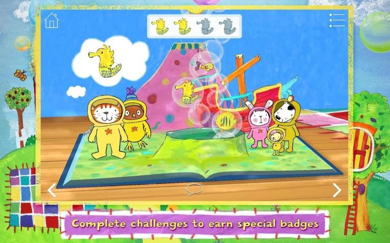 Деятельность весело и легко играть, и дети будут любить зарабатывать значки для завершения дополнительных задач в каждой сцене: