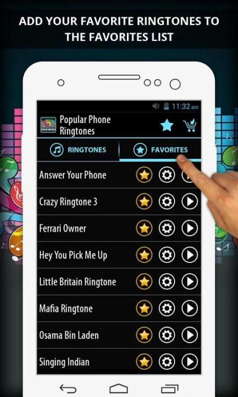 • Добавьте ваши любимые популярные мелодии телефона в список избранных.
