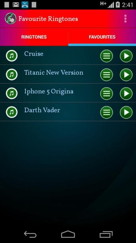 - Установить в качестве мелодии звонка для Android / мелодии контакта / звук будильника / смс звук / Уведомление / удалить / добавить в faviurate