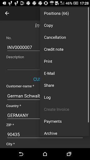 This app helps you to create and send cost estimates and invoices, including cancellation invoices, as well as cost management. - possible in 10 different languages!