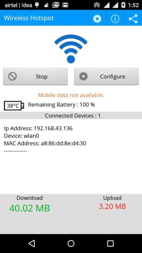 Легко создать Wi-Fi роутер и подключение всех устройств. Доля мобильных данных во всех других включенных беспроводных устройств, таких как Play Station, ноутбук, Wi-Fi динамики и т.д.