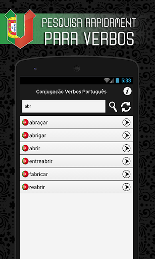Portuguese Verb Conjugator allows to conjugate 1000 verbs of the portuguese language in 23 portuguese tenses a simple and pleasant interface in the form of a dictionary.