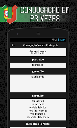 • Up to 1000 Portuguese verbs conjugated in all the time.