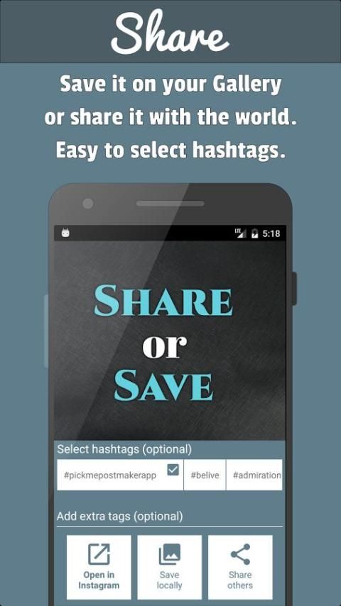 - Поделитесь своими работами на Instagram, используя официальное приложение Instagram, или сохранить его локально на вашем устройстве