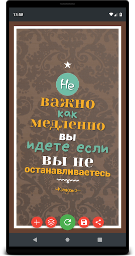 Оформляйте свои любимые цитаты и афоризмы в красивый постер и делитесь с друзьями в социальных сетях.