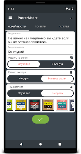 Вам необходимо лишь ввести текст, выбрать цветовую тему и нажать кнопку, всё остальное программа сделает сама.