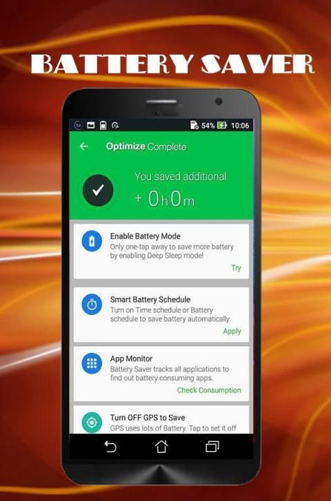 Смарт оптимизация потребления батареи только с одним прикосновением.