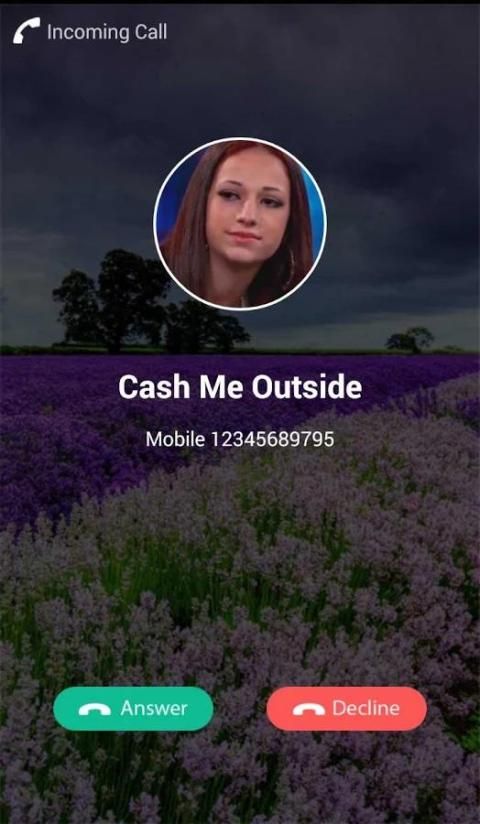 Наличный меня за пределами Ложный вызов является приложение для вызова из "Поймай меня на улице, как бой, что" козырь или "Кать меня ousside как лук тире" и Donald и более фальшивый звонок вызова из другой знаменитости