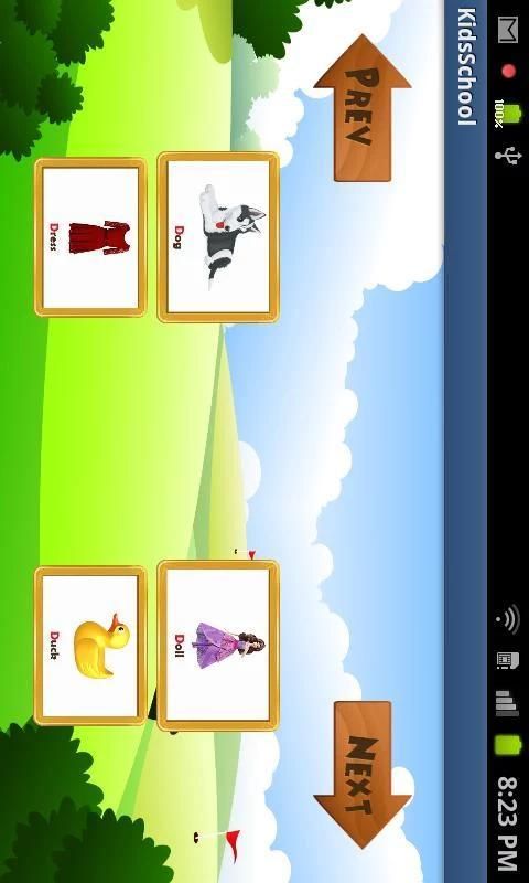 Дети могут нажать на странице, а также с помощью кнопки перехода на следующий и предыдущую страницу. Дети могут коснуться изображение и слышать алфавитов время выраженными.