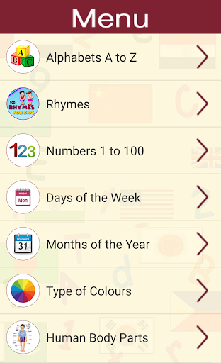 Preschool and kindergarten education is a great FREE android App for kids, 2 - 7 years old, whether they are just getting started, or going into Kindergarten. Start a child’s learning with the best tools, aids, devices, gadgets, apps by making it fun filled and easy to learn the alphabets, numbers, colors, animals, sea animals, fruits, flowers, birds, vehicles, days & months and Human body parts.