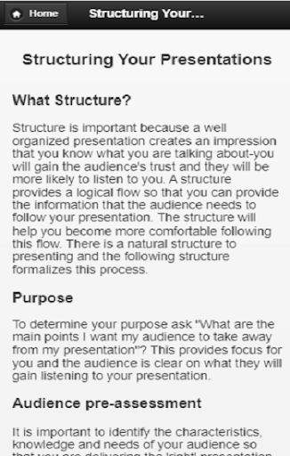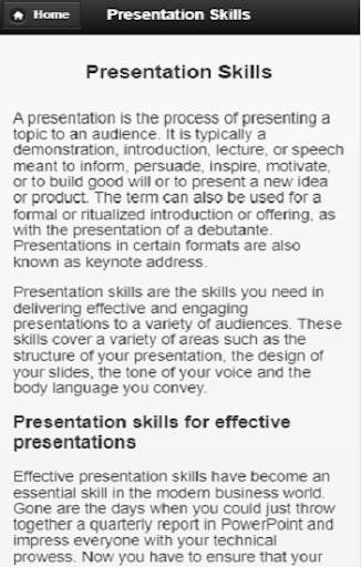 Main topics of Presentation Skills App: