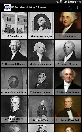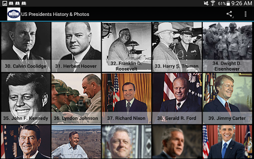 Information included about the following United States Presidents: