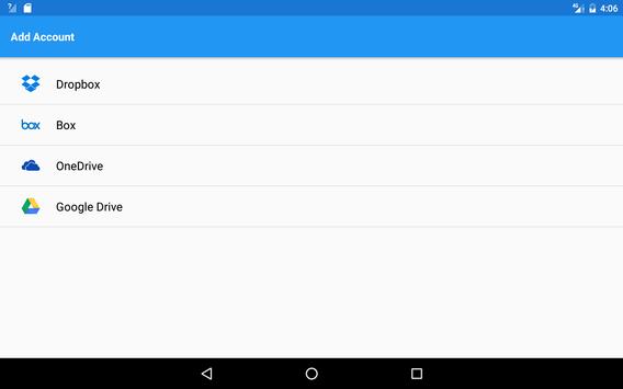 • Cloud: Supports Dropbox, Box, Google Drive and OneDrive cloud services.