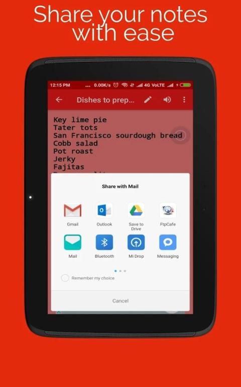 -Поделитесь ваши лучшие с другими приложениями заметки