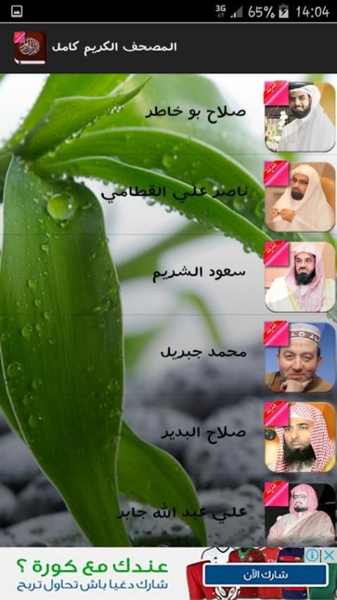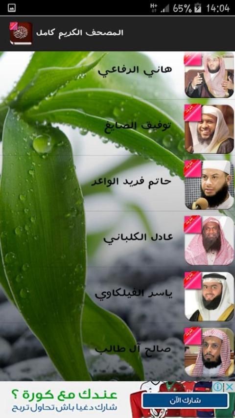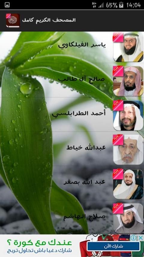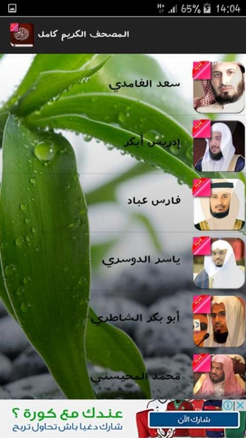Reciters присутствующие в этом приложении: Абдул Рахман аль-Судейс-Ахмед бен Али Аль-Аджми-Baset Абдель-Самад-Махер Almaikulai-Мишари бин Рашид Aallasi-Мухаммад Сиддик Minshawi-Саад Аль-Гамди-Идрис ранние-Фарес Аббад-Ясир аль-Абу Бакр Аль Shatri-Мохаммед Mhaisni-Салах Bukhatir-Насер Али Аль-Qatami-Сауд Аль-Shuraim-Мухаммед Джибриль-Салах Budair-Али Джабер-Хани аль-Рифаи-Тауфик Sayegh-Хатем Фарид Allowaar-Адиль Kalbani-Ясир Alfelkkawi-Салех аль-Талиб-Ахмед Трабелси-Абдулла портной-Абдулла ноль -slah Хашем