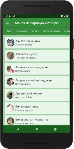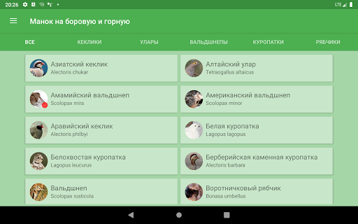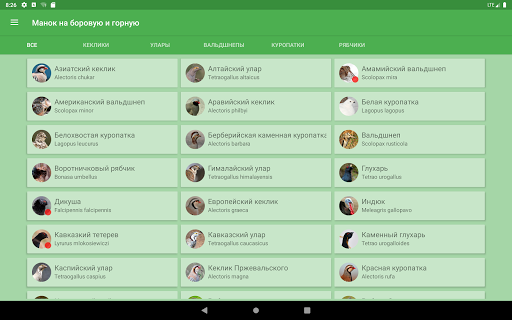 ✔ выберите категорию дичи, звуки которой вы хотите воспроизводить,