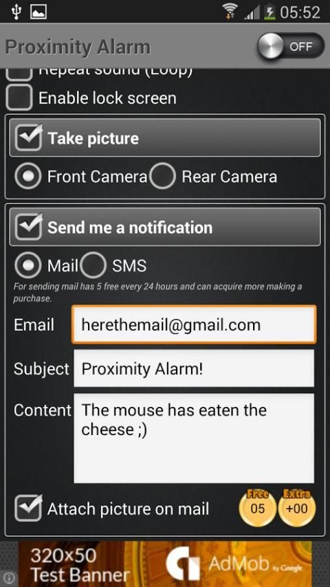 . Когда вы отправить уведомление по электронной почте, захваченных фото могут быть присоединены.