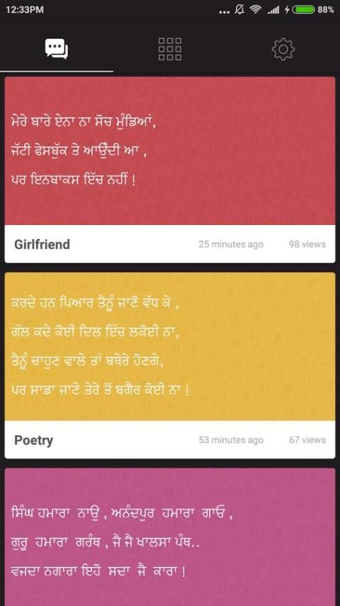 Пенджабские Категории состояния приложения, как новые панджабских цитаты, Dharmik Котировки, Broken Heart Статус, Dharmik Статус, текст статуса, Boyfriend Статус, Подруга, состояния дружбы, пенджаби Любовь Статус, пенджабские Шутки, смешные цитаты, Смешные состояния, пенджаби Мысли, сикхизм цитаты, сикхизм Статус.