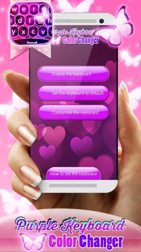 Have you been thinking of ''purple keyboard themes'' for your mobile phone? If you want to change the color of your keyboard and you need a cool keyboard customizer, we have the best offer! ✱Purple Keyboard Color Changer✱ app free of charge is on the market! Install the perfect cover for your old, boring keyboard and you'll refresh your texting hobby with this cute keyboard design! If you are fond on blue and purple keyboard wallpapers, then you will love our sweet emoji keyboard for girls! Get fantastic key pads for your telephone and adorn your love messages with this lovely keyboard!