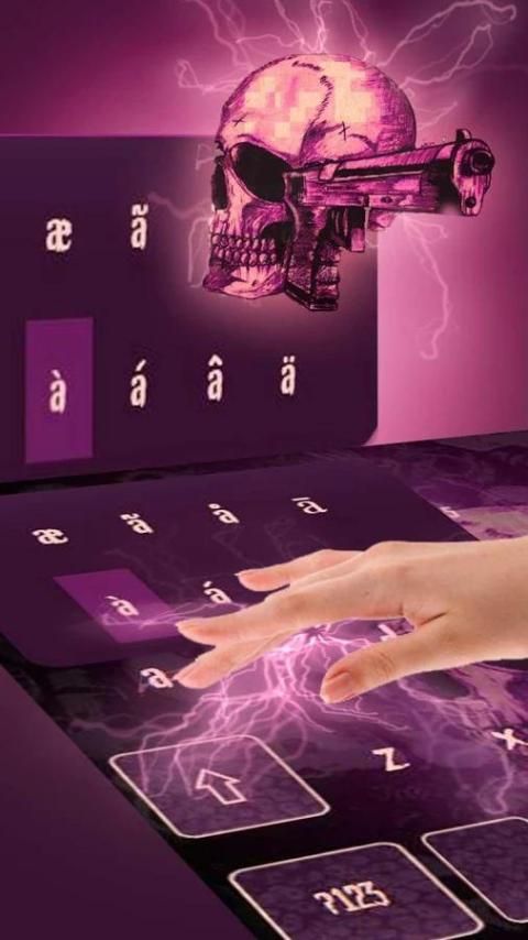 Фиолетовый череп пистолета-пулемета клавиатурная тема имеет фоны Череп оружейной винтовки, значки приложений Фиолетовый череп пистолета-пулемета, шрифты Череп оружейной винтовки. Эта Фиолетовый череп пистолета-пулемета клавиатурная тема специально разработана для людей, которые любят тему Череп пистолетной пушки.