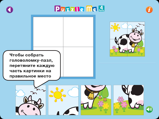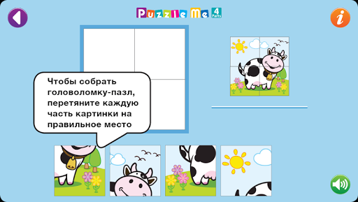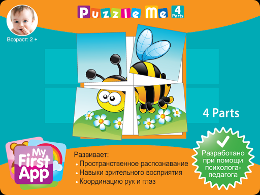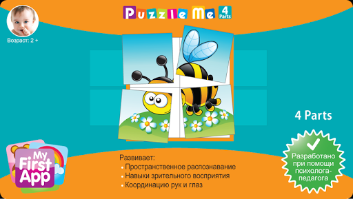 Puzzle Me 1 (4 части) - предназначен для детей в возрасте 2 . Каждая доска имеет квадратную сетку размером 2 на 2.