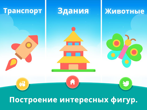 Собираем машинки, животных и постройки из деталей •• Дети учатся различать формы, цвета и размеры •• Множество различных шаблонов и форм.