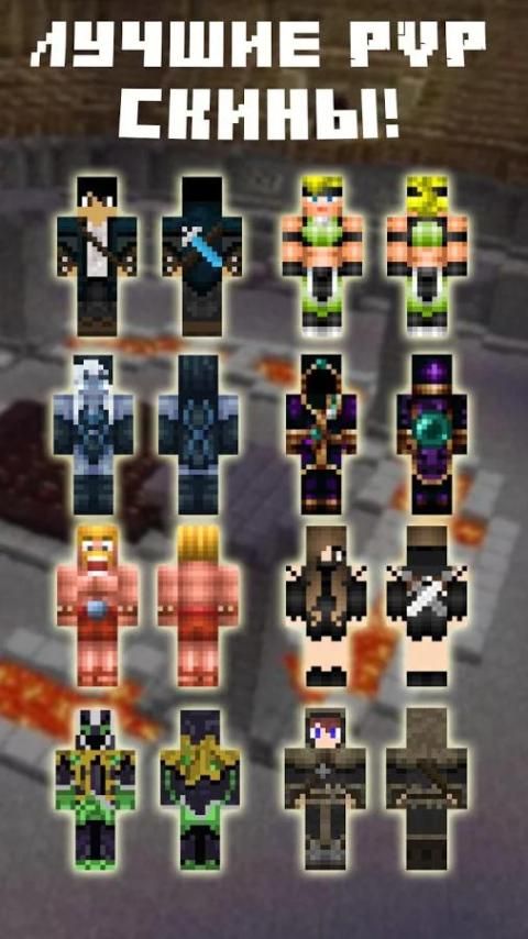 В этом приложении мы собрали самые лучшие pvp скины для майнкрафта. Все скины для minecraft бесплатно доступны. Вы всегда хотели скачать скин военного на майнкрафт и как следует повеселится, устраивая эпические битвы? Что ж, добро пожаловать в мир скинов для майнкрафта, где найдется облик для каждого любителя PvP режима в майнкрафт пе! Наши пвп скины отлично подойдут любителям разнообразных вселенных, фэнтезийных и фантастических, игровых и не очень! У нас есть самые разные персонажи для майнкрафт, которые выглядят реалистично и стильно! Еще бы, ведь в этом приложении мы собрали только самые популярные скины для minecraft, каждый из которых — настоящая ручная работа, где minecraft текстуры подобраны лучшими моддерами! Преобразитесь в персонажей из вашей любимой вселенной и несите повсюду добро с помощью своего алмазного меча! Овервотч и cs go, mdk и варкрафт, магия и холодное оружие — это настоящая битва, где сойдутся самые разные пвп скины для майнкрафт. Наши скины для майнкрафта из игр, несомненно, порадуют вас большим количеством узнаваемых персонажей, и доставят массу удовольствия от игры.