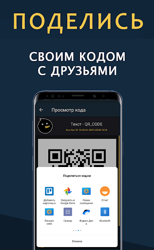 - Возможность делиться как отсканированными, так и сгенерированными кодами