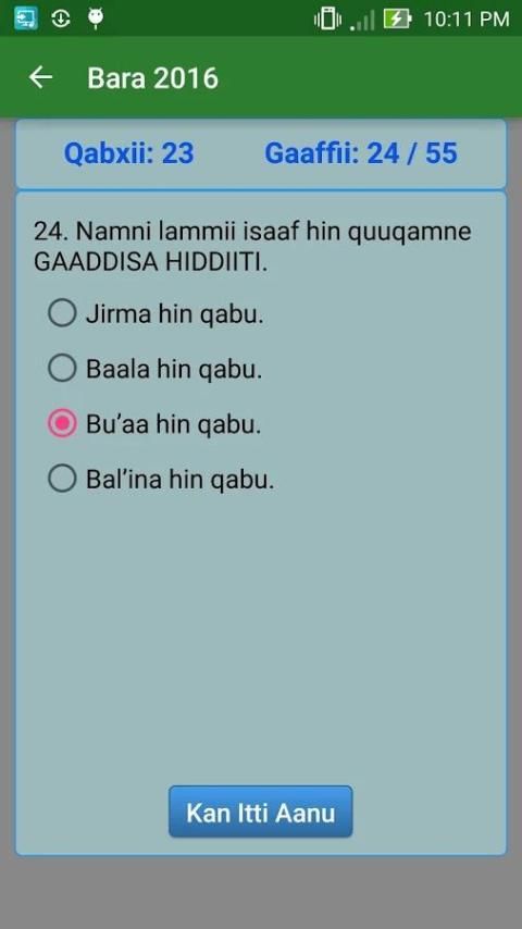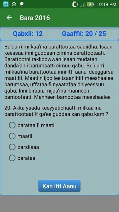 Это приложение содержит Afaan Oromoo вопросы и ответы из предыдущего эфиопской общего среднего образования сертификат экспертизы (EGSECE). Он содержит все вопросы и ответы с 2010 - 2016 г. Приложение помогает студентам подготовиться к экзамену, а также других, чтобы оценить их общие знания. Это приложение совместимо с Android мобильного телефона и планшета, и после загрузки, он работает в автономном режиме. Вы можете поделиться в Google+, Twitter, Facebook, WhatsApp и других социальных медиа сайтов с друзьями и последователями.