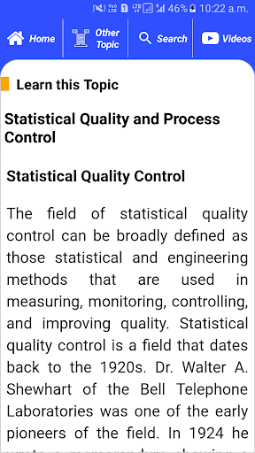 Это полезное приложение перечисляет 88 тем с подробными примечаниями, диаграммами, уравнениями, формулами и материалами курса, темы перечислены в 5 главах. В приложении вы узнаете некоторые важные главы, такие как полный контроль качества материалов, контроль качества, введение круга качества, характеристики качества, история шести сигм, определение шести сигм, контрольные карты и использование контрольных карт и т. Д.