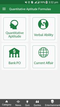 Quantitative Aptitude Formulas tips and tricks apps containing the many types tips and tricks.In this application we have summarized all types of formulas and tricks which are very useful for competition and other students.Now this app contains the daily quiz for users.
