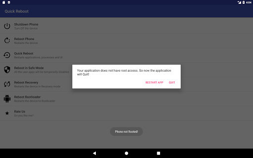Перезагрузка / перезагрузкаПерезагрузите «Системные команды, которые требуют доступа к корню.