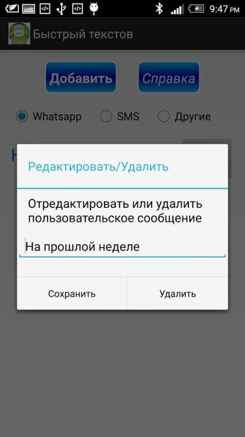 - Редактировать/Удалить часто используются сообщения/шаблоны сообщений.