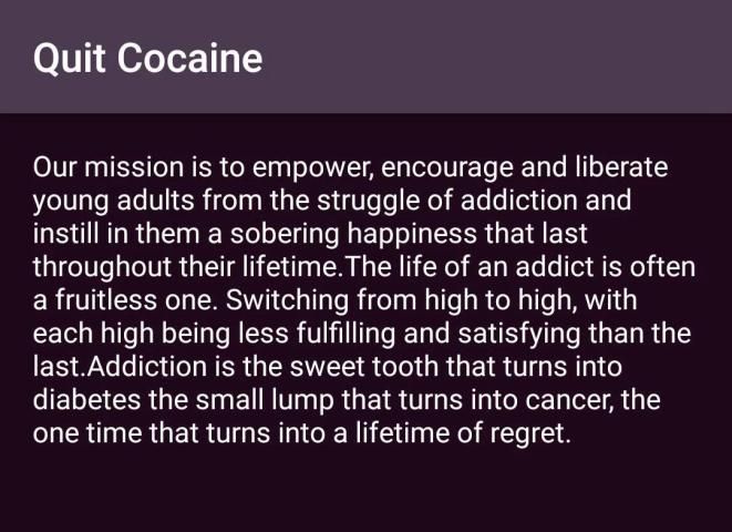 Бросить Кокаин, чтобы напомнить вам о усилия, которые вы делаете, чтобы помочь вам избежать соблазна, Quit кокаином сообщит вам о:
