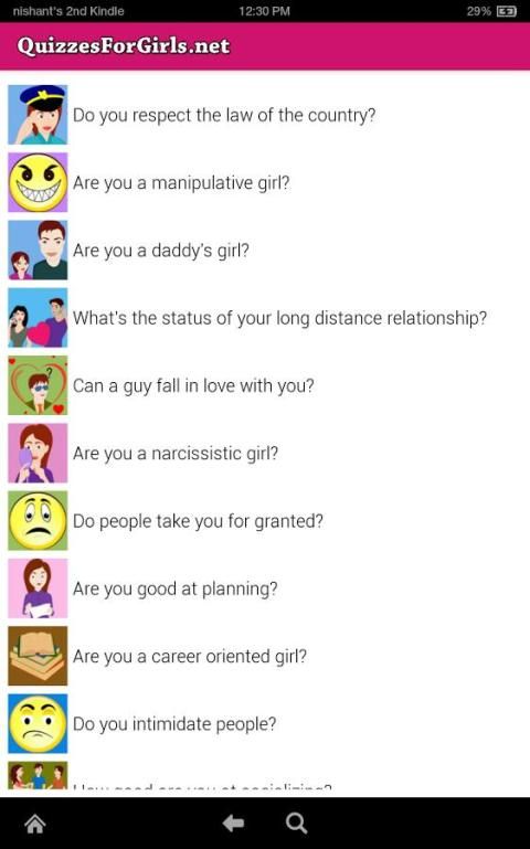 Мы 210+ викторины для девочек в этом приложении. Эти викторины для девочек. У нас есть личности викторины, любовь, отношения викторины викторины, модные викторины и т.д. для девочек.