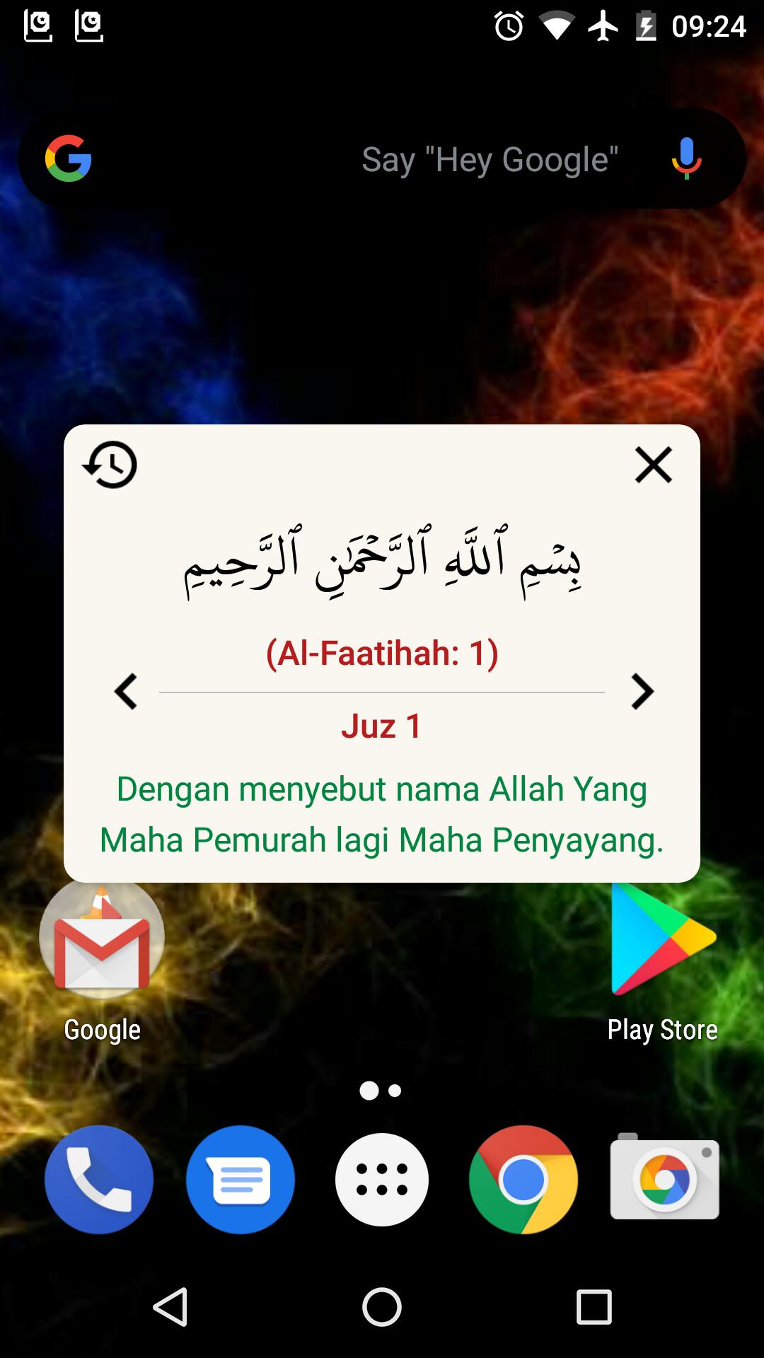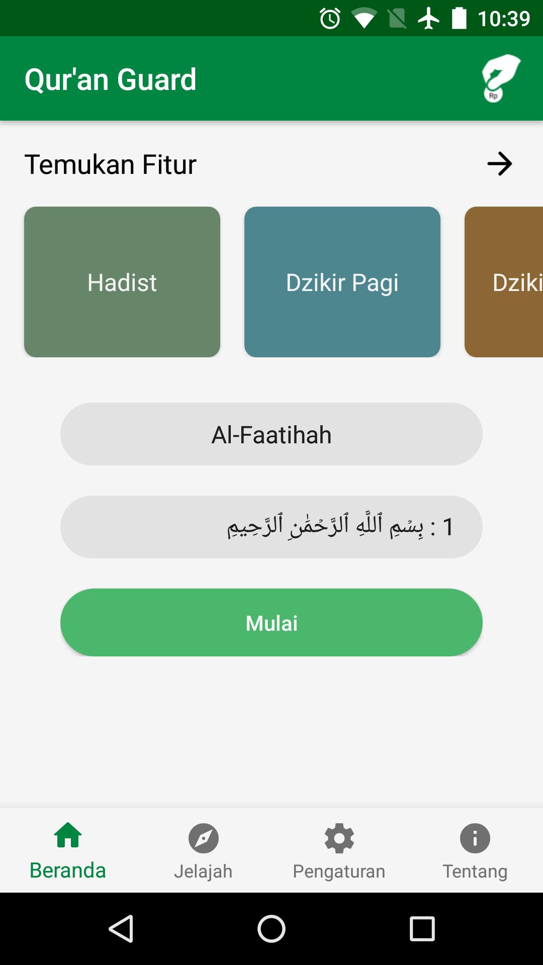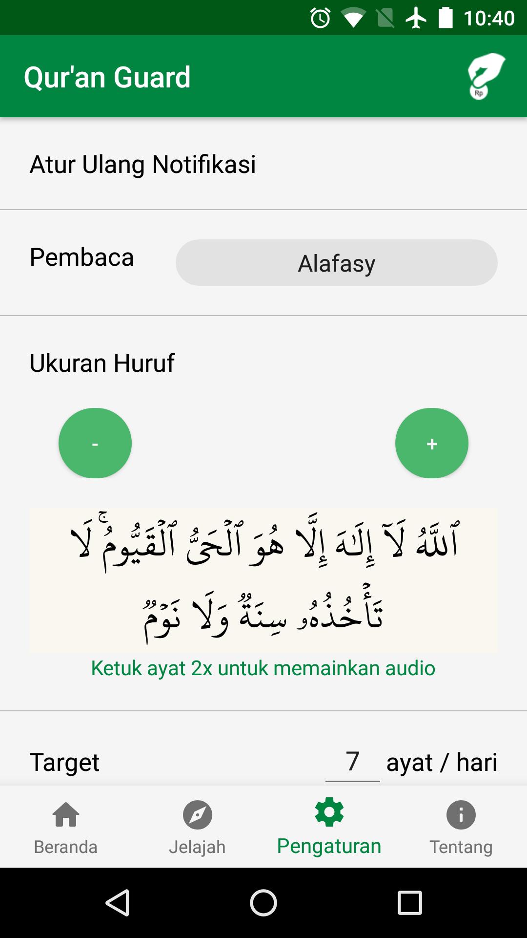 - Menampilkan ayat Al-Qur'an dan terjemahan setiap kali mengaktifkan smartphone