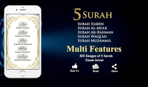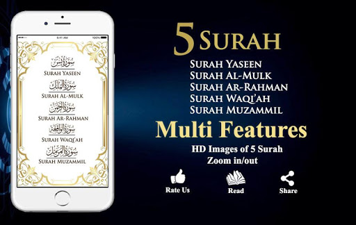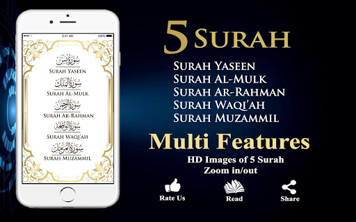 is an Islamic offline Quran Learning application. These Five surahs are Surah Yaseen, Surah Rahaman, Surah Waqiah, Surah Mulk and Surah Muzammil. All 5 Surah from holly Quran are offline . All five surahs is a Free app with all five Surah reciting. This contains five Surahs of the Holy Quran.Every All can listen it without any internet and you can share this app to your friends. This is free holly Quran app with five surahs recite in Arabic. All 5 surahs are in HD images.