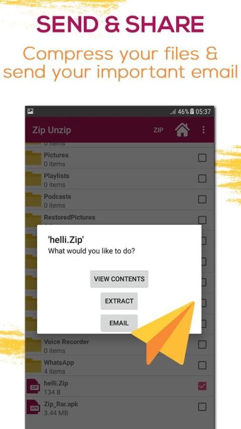 RAR Zip File Extractor позволяет архивное отображение контента без декомпрессии. Экономия времени за счет выбора файлов и их извлечения. Затем откройте файлы непосредственно в Zip UnZip Tool, Rar UNRAR.