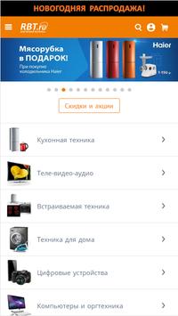 RBT.ru представляет собой сеть розничных салонов бытовой техники и электроники, интернет-магазин и сертифицированный сервисный центр. В составе региональной сети 140 гипермаркетов на территории Урала, Сибири, Поволжья и Дальнего Востока. Интернет-магазин представлен в городах-миллиониках, таких как Москва, Новосибирск, Екатеринбург, Казань, Челябинск, Красноярск, Омск, Уфа, Пермь. В RBT.ru покупатели смогут получить профессиональную консультацию, из широкого ассортимента выбрать наиболее подходящую модель техники и приобрести ее по ценам интернет-магазина. Интернет-магазин RBT.ru открылся в 2000 году в Челябинске. Сегодня работает в 100 городах России. Это первый интернет-магазин бытовой техники и электроники на Южном Урале.