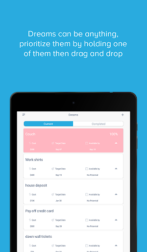 большинство мечтаний кажутся вне досягаемости, потому что у нас нет понимания, чтобы показать нам Когда мы можем реально достичь наших снов, влияние распространения нашей экономии в слишком многих мечтах одновременно или видимость того, где сберегательный потенциал может быть использован для быстрее, чтобы реализовать наши мечты быстрее.