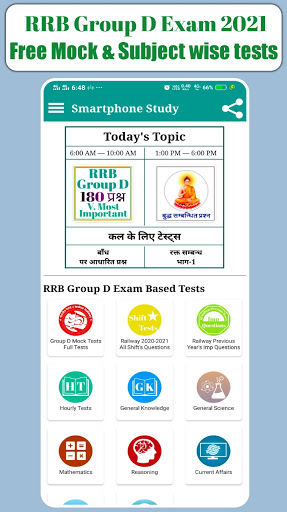 This is package of Practice sets or mock tests. It will help users to save their TIME and they can do more preparation for their Exams. It is based on CBT ( Computer based test) and online mode exams. By using this app, user can avoid understanding issues happened at the time of examination. User can get more practice sets by visiting our website. For any exam, user can get related practice sets of SMARTPHONE STUDY.