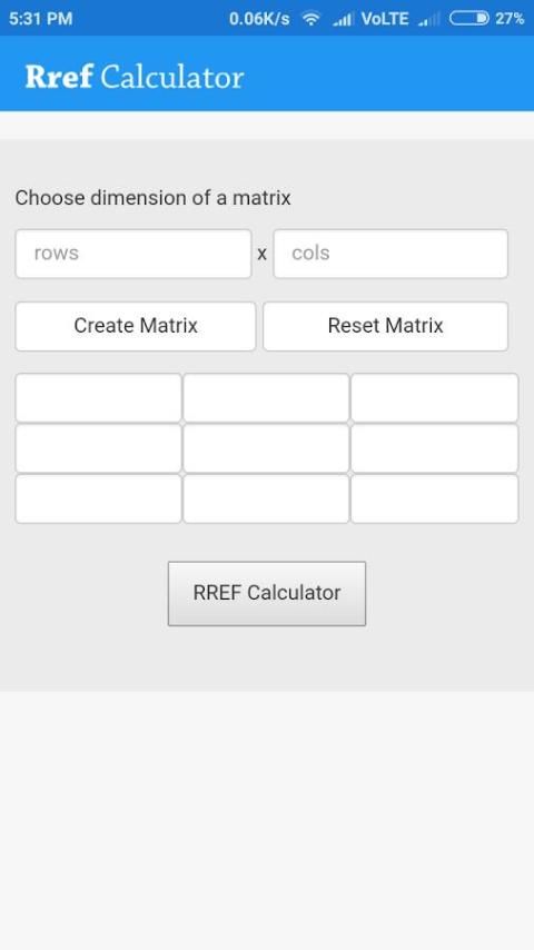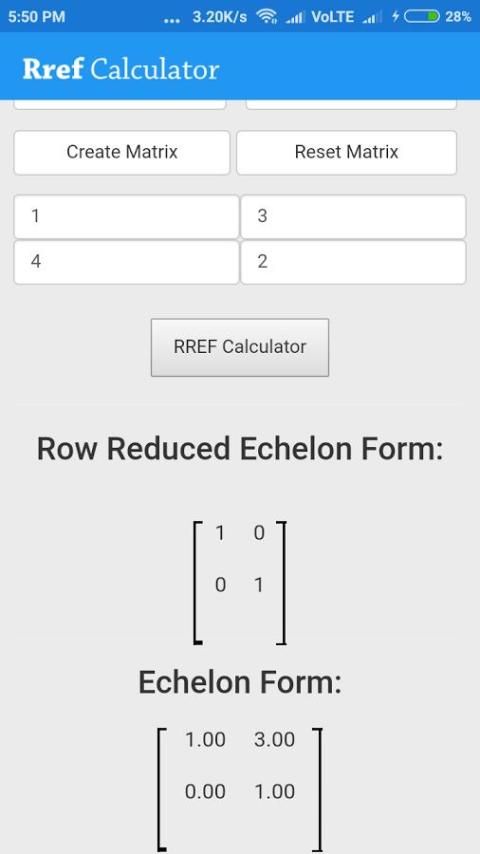 Это простое приложение для coverting матриц в RREF форме или в форме REF. Особенности этого приложения перечислены ниже -