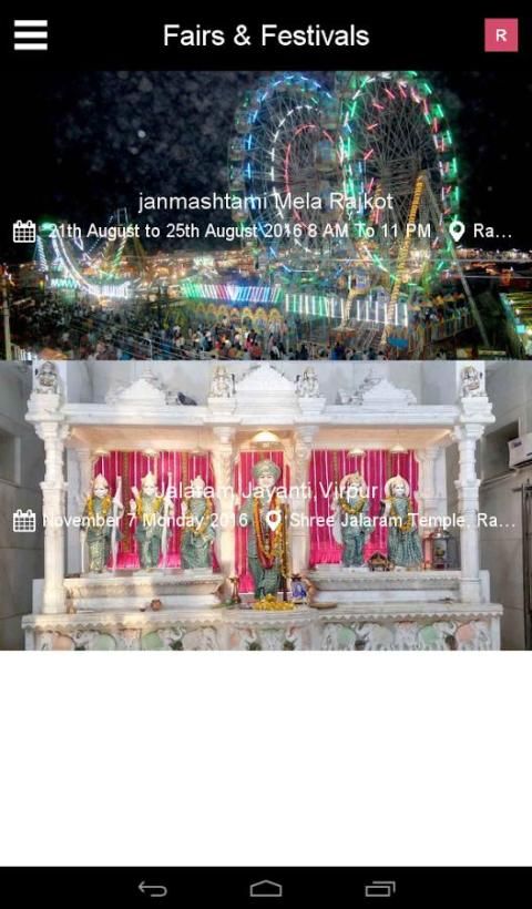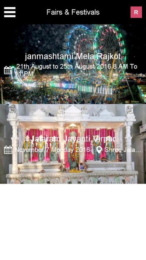 4. Включает Ярмарку & фестивали с датой, изображениями и направлением от вашего местоположения, чтобы поместить место, соединяющей культуры Раджкота.