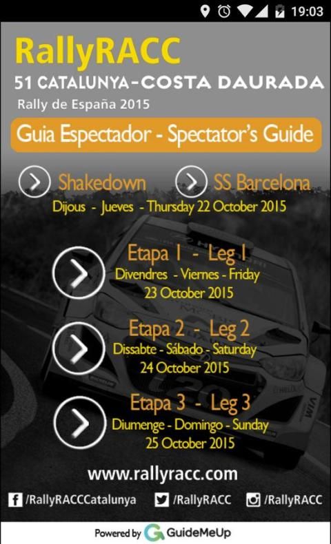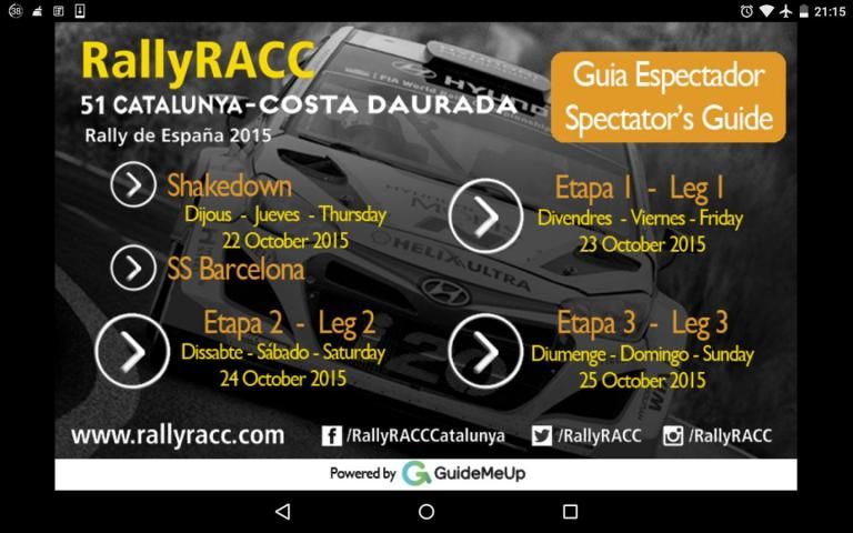 Guía oficial del 51 RallyRACC Catalunya - Costa Daurada puntuable WRC. Dispone de los tramos, horarios, zonas de público i accesos para la prueba que se disputará del 22 al 25 de Octubre de 2015.